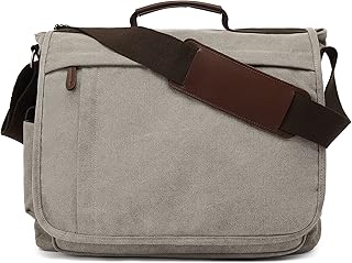 Umhängetaschen Herren aus Canvas Schultasche Queformat A4 Laptoptasche für 15,6 Zoll Laptop Arbeitstasche Aktentasche