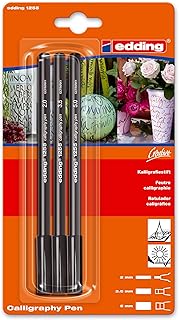 edding 1255 calligraphy pen - for elegant lettering Nothing looks quite as stylish as beautifully calligraphy. Do you love the beautiful writing found in old books, certificates or documents? Well, with edding you can achieve the same results! What used to require a feather quill and paintbrush can now be done easily with this calligraphy pen. edding 1255 calligraphy pen - black - 1 pen - calligraphy nib 2 mm - fibre pen for paper, wood, terracotta, canvas - hand lettering, bullet journals, thank you cards, calligraphy books Visit the edding Store 124 ratings Size: 2mm 1 Count (Pack of 1) 2mm Set of 3 3.5mm 5mm Color: black About this item