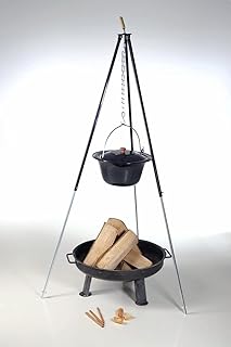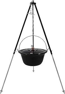 acerto 31799 Ungarischer Gulaschkessel 50 Liter Dreibein-Gestell 180cm Feuerschale 80cm Kaminholz Buche | Teleskop-Dreifuß mit Gulasch-Topf Suppentopf Glühweintopf Große Feuerschale für draußen