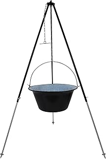 GRILLPLANET® ungarisches Dreibein 1,80m und original 30 L Gulaschkessel mit Deckel/Gulasch Topf Kessel emailliert für offenes Feuer
