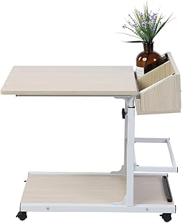 Cocoarm Computertisch Schreibtisch mit 4 Rollen Mobile Laptoptisch Pflegetisch Frühstückstisch Höhenverstellbar Bettisch PC Tisch Arbeitstisch für Home Schlafzimmer 60 x 35 x 50-80cm (Weiß)