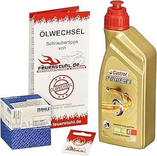 Castrol 10W-40 Öl + Mahle Ölfilter für Kawasaki D-Tracker (KLX 125), LX125C - Ölwechselset inkl. Motoröl, Filter, Dichtring