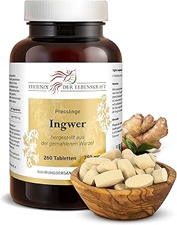 Ingwer Tabletten à 750mg, 260 Tabletten (Zingiber officinale, Ingwerwurzel), Premium Qualität, Hergestellt in Österreich, Tabletten statt Kapseln, Vegan