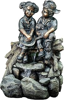 Dehner Gartenbrunnen Lea und Leon mit LED Beleuchtung, ca. 68.5 x 45 x 35 cm, Polyresin, grün/blau/braun