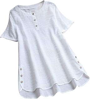 Cramberdy Damen Oberteile Sommer Elegant Damen Baumwolle Leinen T Shirt Oversize Einfarbige Oberteile Shirt Frauen Casual Bluse Lose Kurzarmshirt Hemd Tuniken Tops Teenager Mädchen Shirts