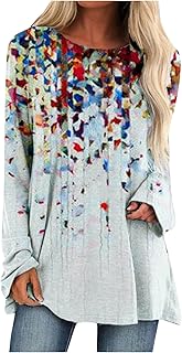Oberteile Damen Langarmshirt Damen Oberteile Longshirt Casual Lose Pullover Blusen Tuniken Shirt Druck Top Frauen Teenager Mädchen Beiläufig Tunika Sweatshirt Tshirt Bluse