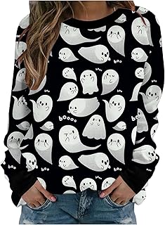Rundhalspullover Damen Bluse Geisterdruck Motiv Herbst Langarm Oberteile Langarmshirt mit Pullover Casual Halloween Lange Ärmel Drucken Oberteile T-Shirt Sweatshirt Tops Loose Pulli Sweatshirt Jumper