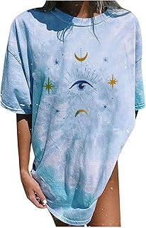 Tshirt Damen Kurzarm Sommer Oberteile Oversize Vintage Tie-dye Sonne und Mond Grafik Drucken lose Bluse Rundhals Basic Shirt Elegant Pullover Sweatshirt Teenager Mädchen Top