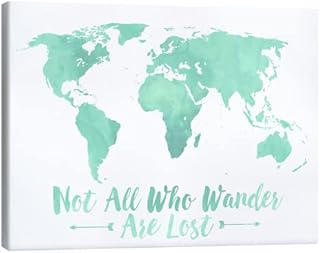 Posterlounge Weltkarte in Mint Leinwandbild von Mod Pop Deco Wandbilder für jeden Raum 90 x 70 cm Grün Aquarell Malerei Wanddeko