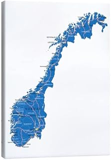 Posterlounge Karte Norwegen Leinwandbild Wandbilder für jeden Raum 50 x 70 cm Reisen Wanddeko