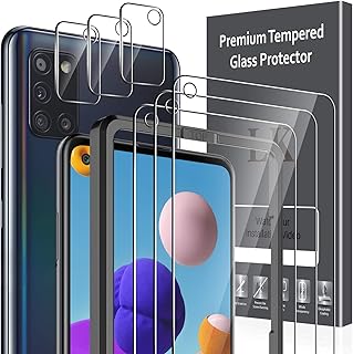 LK 6 Stücke Schutzfolie Kompatibel mit Samsung Galaxy A21S Panzerglas, 3 Schutzfolie und 3 Kamera Schutzfolie, 9H Härte Schutzfolie, HD Klar Displayschutz, Kratzen Blasenfrei Einfacher Montage