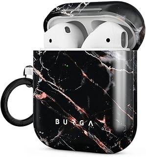 Burga AirPods Hardcase, Kompatibel mit Dem Ladecase für Apple AirPods 2 & 1, Schwarz Marmor Muster Black Marble, Schutzhülle aus Hartplastik