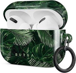 Burga AirPods Hardcase, Kompatibel mit Dem Ladecase für Apple AirPods PRO 2019, Tropisch Grün Exotisch Sommer Palme Palmenblätter Palmblatt Green Palm Tree, Schutzhülle aus Hartplastik