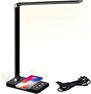 LED Schreibtischlampe Tischlampe mit Induktiv Wireless Charger, Schreibtischlampe mit Touch-Steuerung, USB-Ladeanschluss, 5 Beleuchtungsmodi, 5 Helligkeitsstufen, Automatische Freigabe 30/60 Minuten