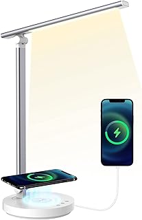 SMARTIVE | Design Schreibtischlampe mit kabelloser Ladefunktion - LED Bürolampe mit 10W wireless charging - augenschonendes Licht dimmbar und Laden ohne Kabel | desk lamp schwarz + USB Ausgang41. €39,90€39,90. LED-Schreibtischlampe,Tischlampe mit Augenschutz,dimmbar,Touch Control,mit10 Helligkeitsstufen 5 Beleuchtungsmodi,USB-Ladeanschluss.6.288. Die Schreibtischlampe ist formschön, in der Lichtfarbe und - Helligkeit einstellbar. Schick auch die Farbgebung passend zum Schreibtisch. Die Wireless sowie USB-Lademöglichkeit sowie die Datums-, Uhrzeit-und Innentemperaturanzeige finde ich zusätzlichgelungen. Alles in allem ein gelungenes Produkt zum attraktiven Preis und blitzschnell geliefert.