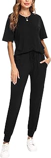 Damen Hausanzug Schlafanzug, Freizeitanzug Damen Weicher Pyjama Running und Sommer 2 Stücke Jogginganzug Sportanzug Hausanzug Zweiteiler, Kurzarm Leisure Oberteil und Caprihose