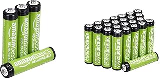 Amazon Basics AAA-Batterien, wiederaufladbar, vorgeladen, 4 Stück (Aussehen kann variieren) & AAA-Batterien, 800 mAh, wiederaufladbar, 24 Stück