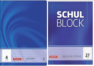 Brunnen 1052527 Schulblock / Notizblock (A4, 50 Blatt, liniert, mit Randlinien, Lineatur 27, gelocht, kopfverleimt, 70 g/m²) & 104492002 Schulheft A4 (16 Blatt, blanko, mit Linienblatt, Lineatur 20)