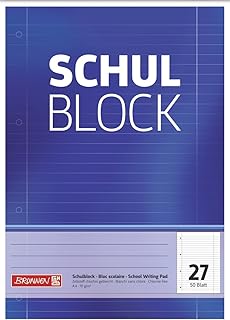 Brunnen 1052527 Schulblock / Notizblock (A4, 50 Blatt, liniert, mit Randlinien, Lineatur 27, gelocht, kopfverleimt, 70 g/m²)