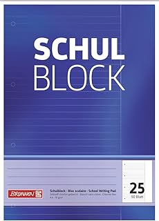 Brunnen 1052525 Schulblock / Notizblock (A4, 50 Blatt, liniert, mit Rand, Lineatur 25, gelocht, kopfverleimt, 70 g/m²)