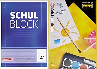 Brunnen 1052527 Schulblock / Notizblock (A4, 50 Blatt, liniert, mit Randlinien, Lineatur 27, gelocht, kopfverleimt, 70 g/m²) & Idena 10387 - Zeichenblock, DIN A4, 20 Blatt, 120 g/m², 1 Stück