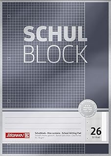 Brunnen 1052526 Schulblock / Notizblock (A4, 50 Blatt, kariert, mit Rand, Lineatur 26, gelocht, kopfverleimt, 70 g/m²)