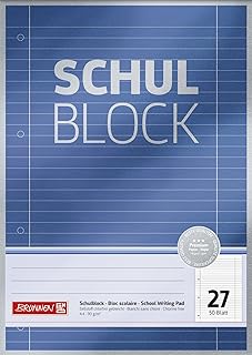 Brunnen 1052627 Schulblock / Notizblock Premium (A4, 50 Blatt, liniert, mit Randlinien, Lineatur 27, gelocht, kopfverleimt, 90 g/m²)