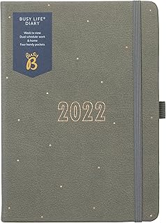 BusyB - Busy Life Terminkalender von Januar bis Dezember 2022 - Grau Kunstleder A5 Wochenplaner mit doppeltem Terminplaner, Stifthalter und Steckfächern