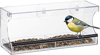 Relaxdays Vogelfutterhaus, Vogelfutterspender aus Acryl, Vogelhaus für Fensterscheibe, HBT: 13 x 30 x 12 cm, transparent