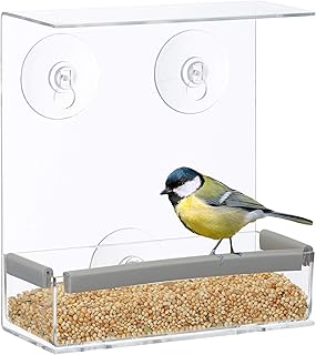 Fenster Vogelfutterspender,vogelhaus Fenster saugnapf,Transparenter Saugfuß Durchsichtiger Vogelhaus Fenster Vogelfutterspender Großer Acryl Vogelfutterspender Vogelfutterstation,15x7x16cm