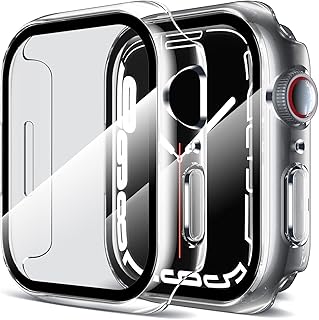 YoLin 2-Stück Mit Panzerglas Ultradünne Displayschutz Kompatibel mit Apple Watch Series 7 45mm, PC All-Around Schutzhülle für iWatch 45mm (2 Transparent)