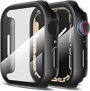 YoLin 2-Stück Mit Panzerglas Ultradünne Displayschutz Kompatibel mit Apple Watch Series 7 45mm, PC All-Around Schutzhülle für iWatch 45mm (2 Schwarz)